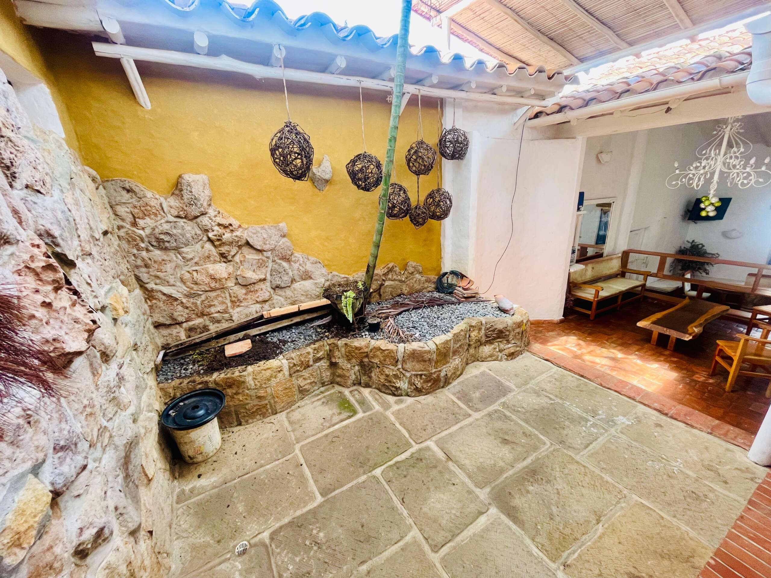 De estilo tipo apartamento, la vivienda ha sido construida en tapia pisada y concreto, combinando tradición y solidez. Cuenta con una excelente distribución de espacios, ideal tanto para vivir como para invertir en un proyecto turístico.